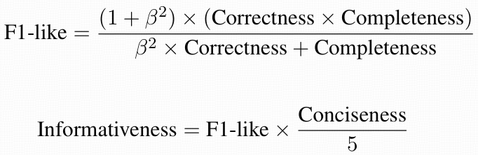 Date | Concise. (%) | Correct. (%) | Complete. (%) | F1-like (%) | Info. (%) |